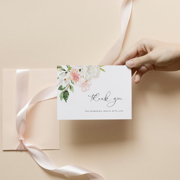 Blush Pink & White Floral Bridal Shower Thank you Card