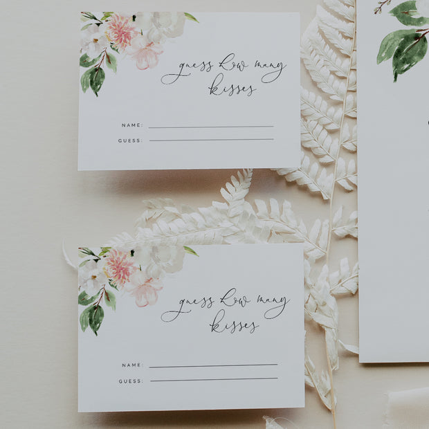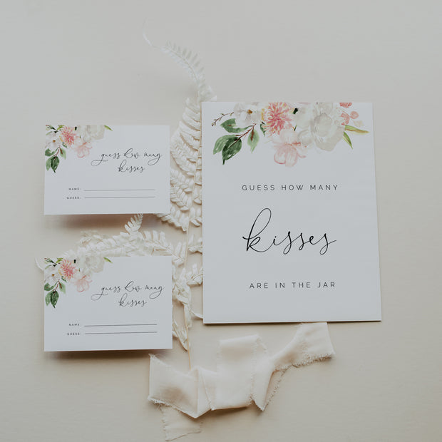 Blush Pink & White Floral Guess How Many Kisses Sign & Cards