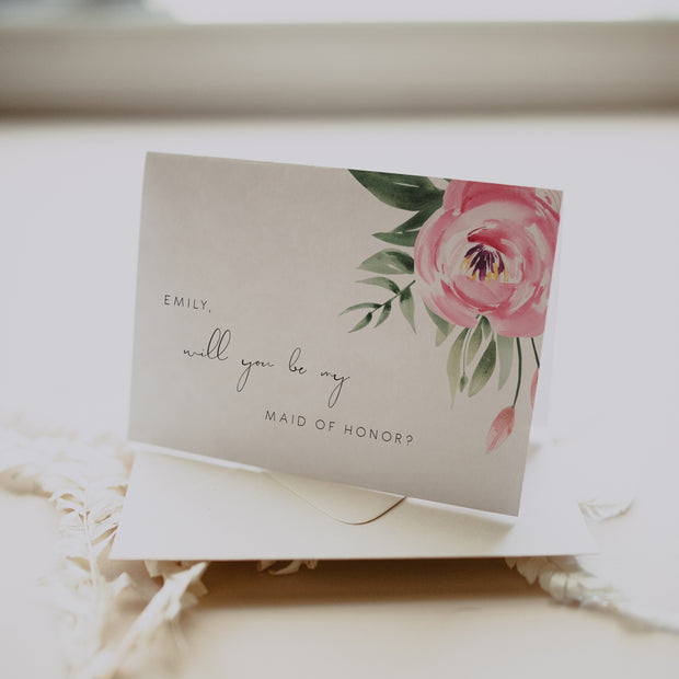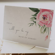 Serena Pink Peony Will You Be My Bridesmaid Card