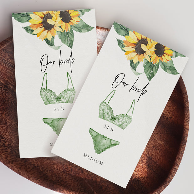 Sunflower Lingerie Size Card for Bridal Shower