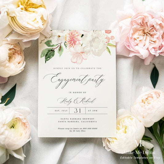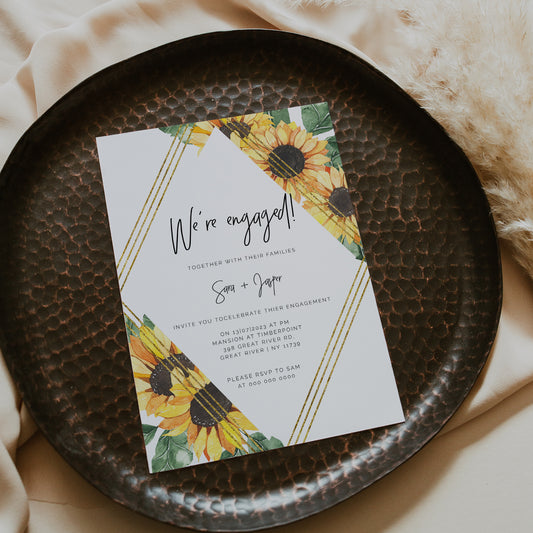 Elegant Calligraphy 'We're Engaged' Engagement Party Invitation