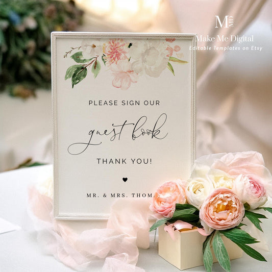 Blush Pink & White Floral Unplugged Ceremony Sign