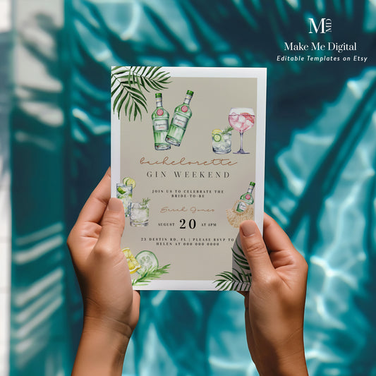 Gin Tropical Beach Party Bachelorette Weekend Invitation