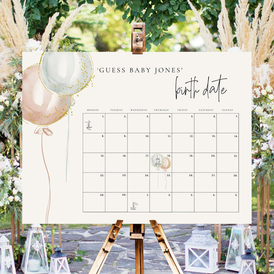 Pink & Blue Balloon Gender Reveal Guess Baby's Due Date Game editable sign