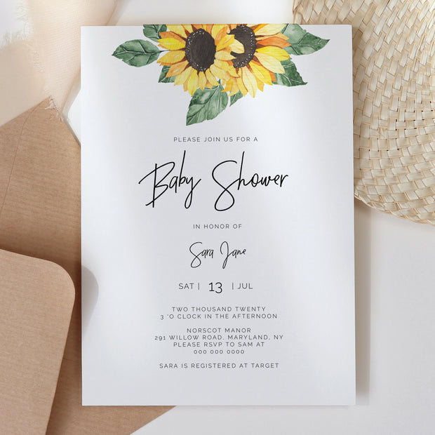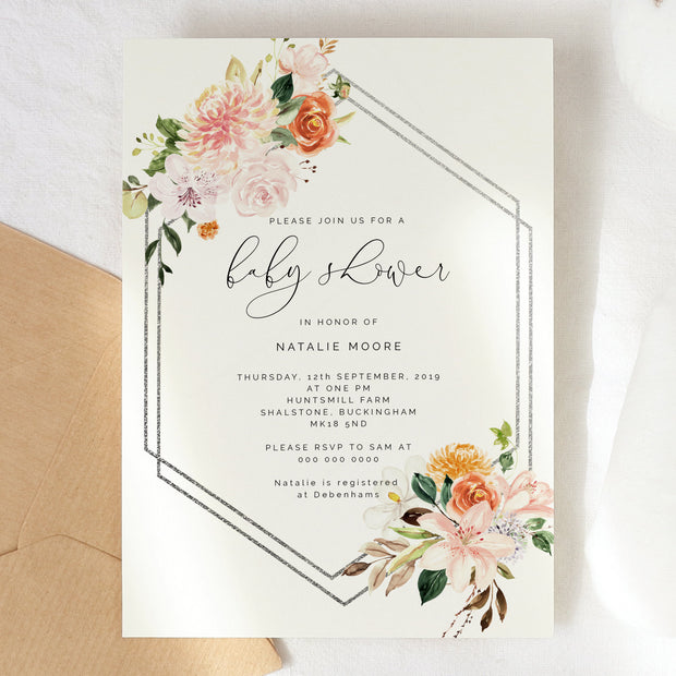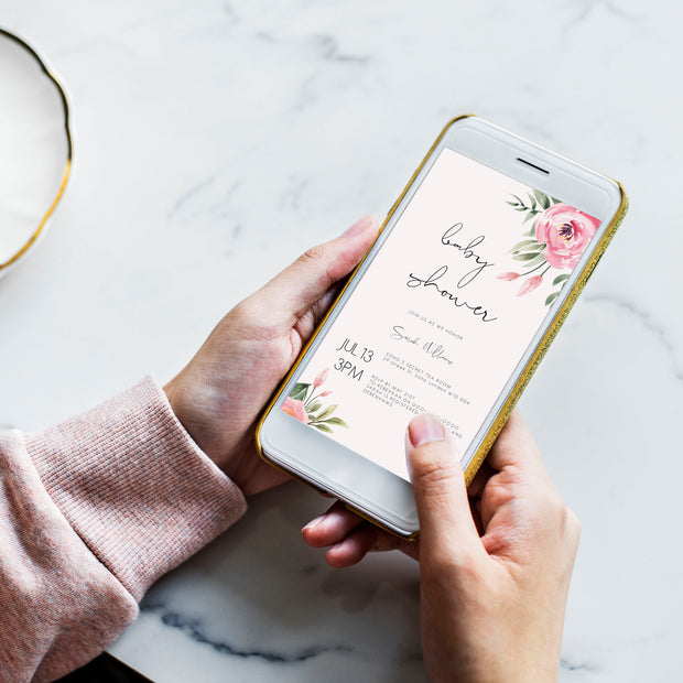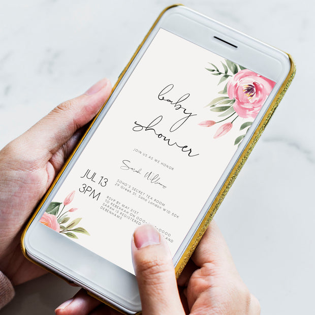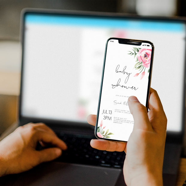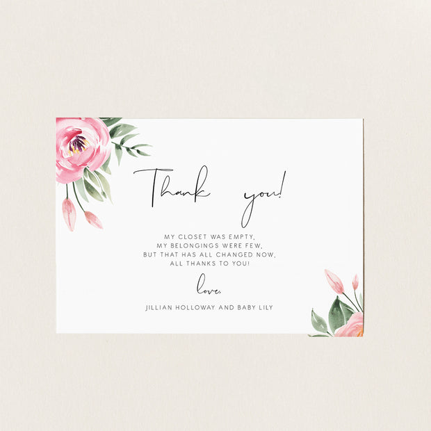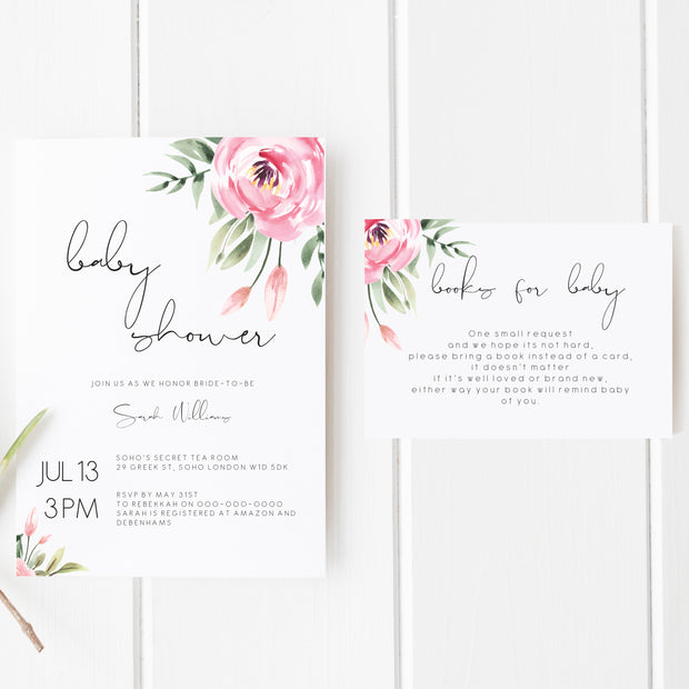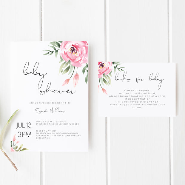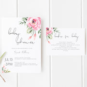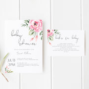Serena Pink Peony Baby Shower Invitation Set of 2