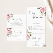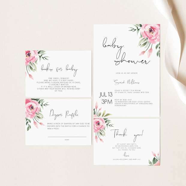 Serena Pink Peony Baby Shower Invitation Set of 4
