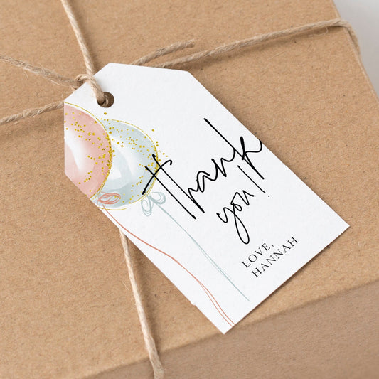 Blue and Pink Balloon Gender Reveal Thank you tag