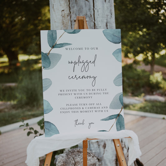 Blue Eucalyptus Unplugged Wedding Ceremony Sign