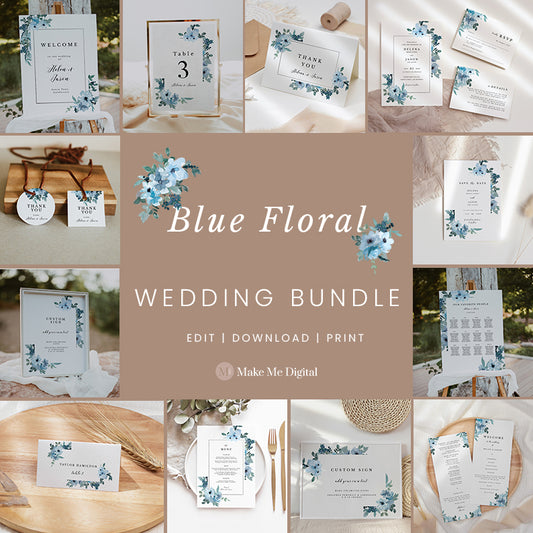 Porcelain Blue Floral Wedding Stationery Bundle (15 items)