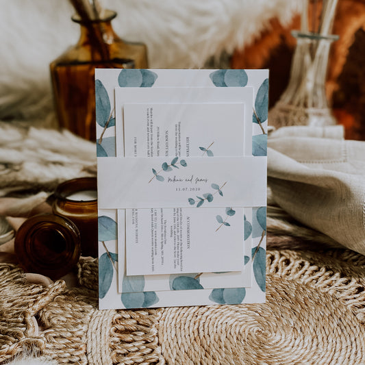 Nala Blue Eucalyptus Bridal Shower Invitation Set of 3