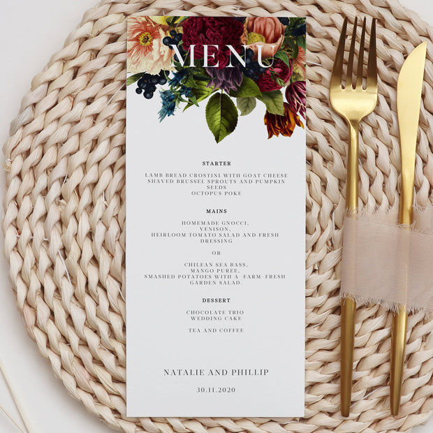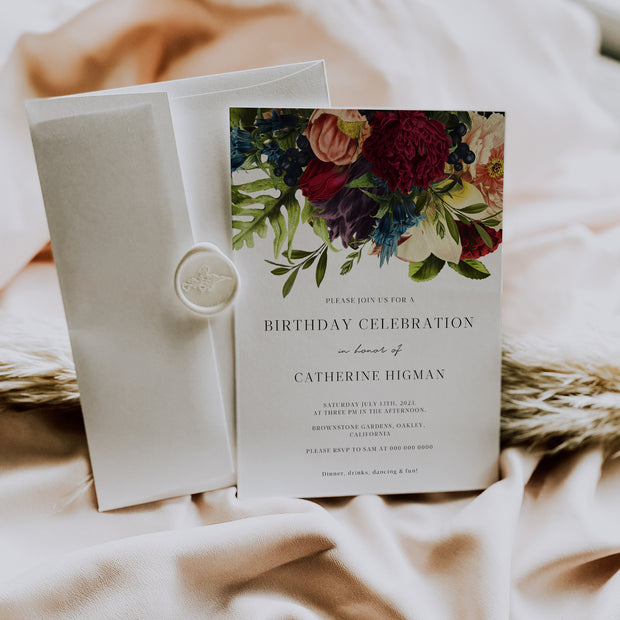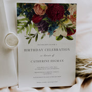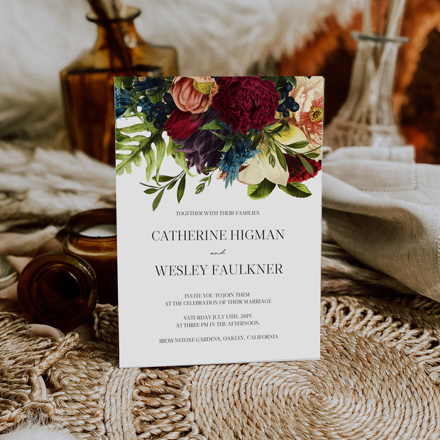 Navy & Burgundy Moody Floral Wedding Invitation evite
