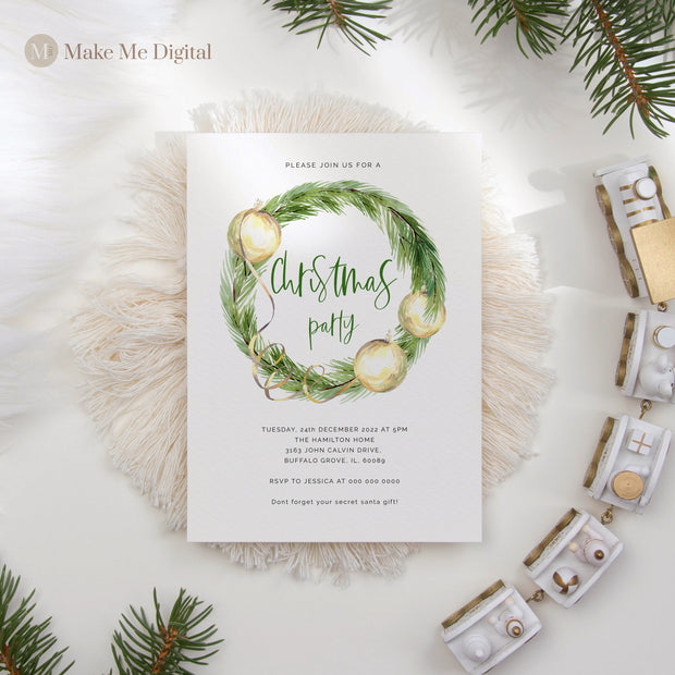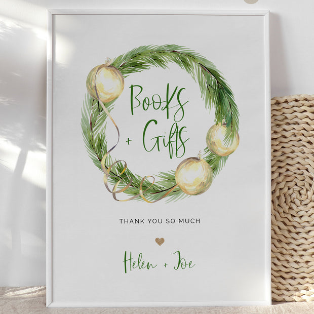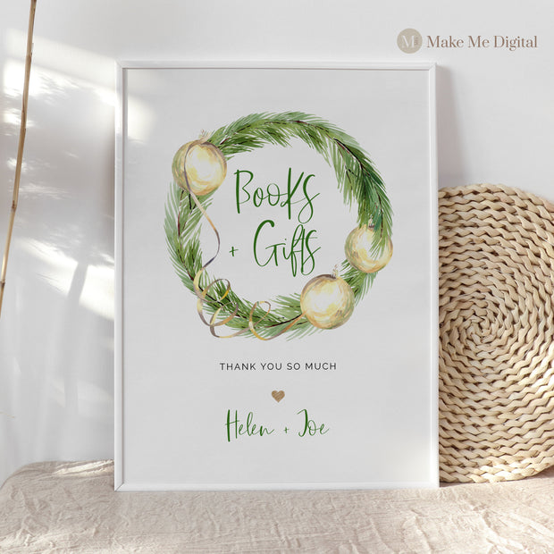 Green & Gold Christmas Baby Shower Invitation Bundle