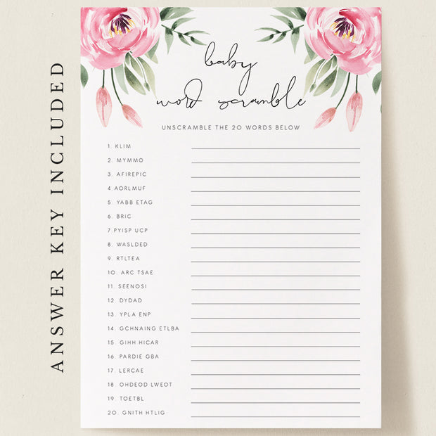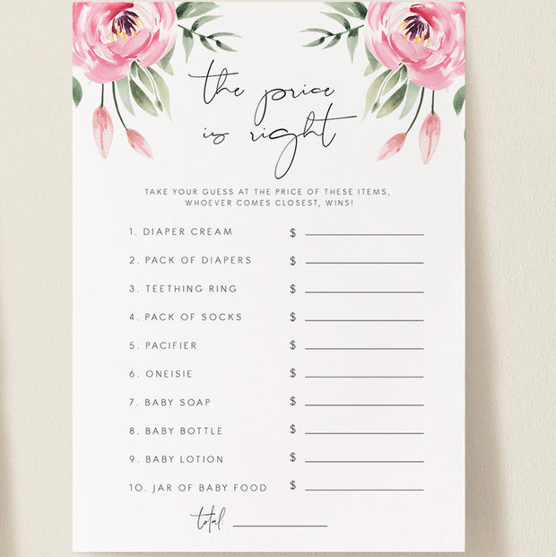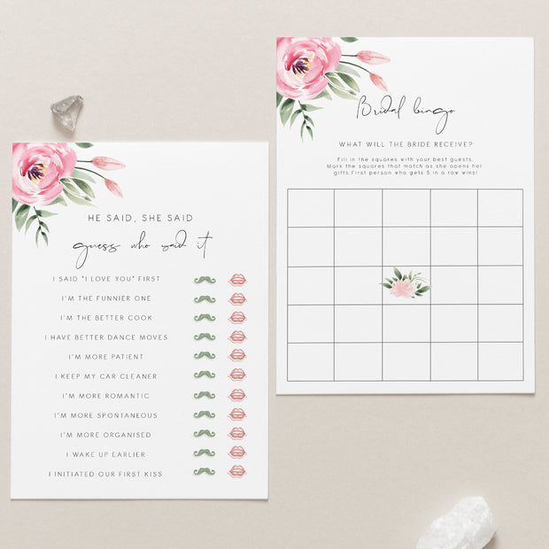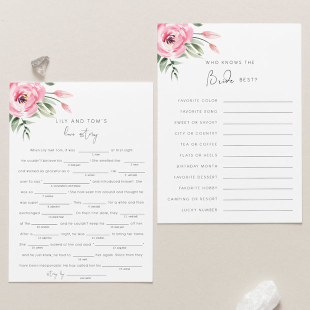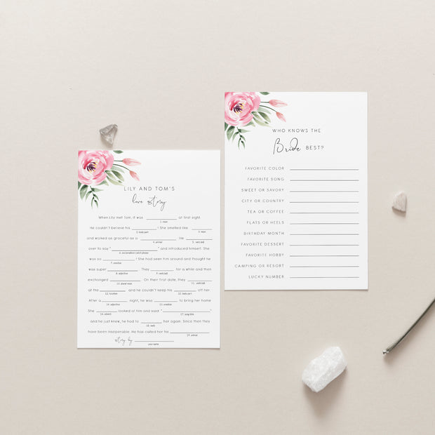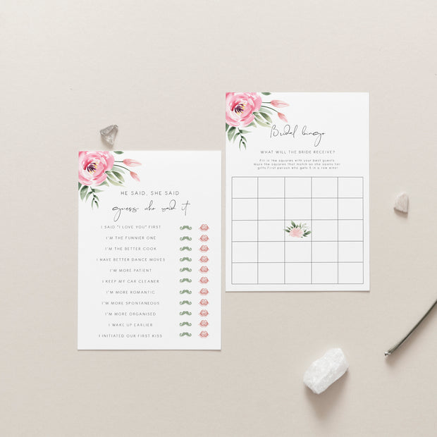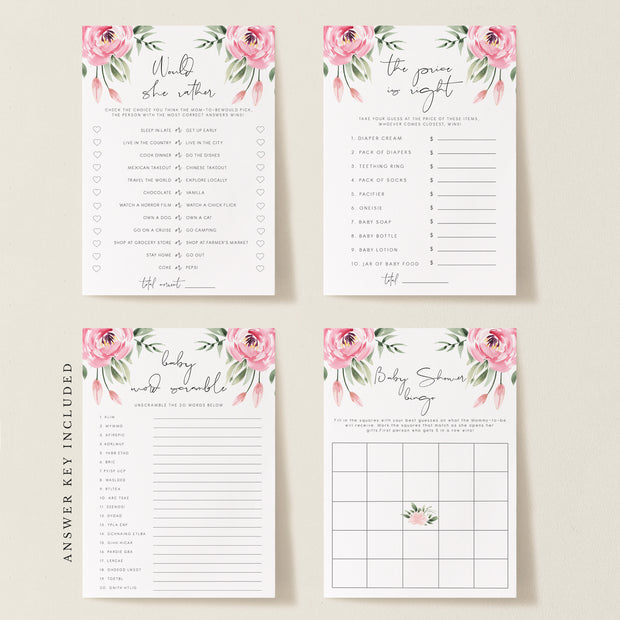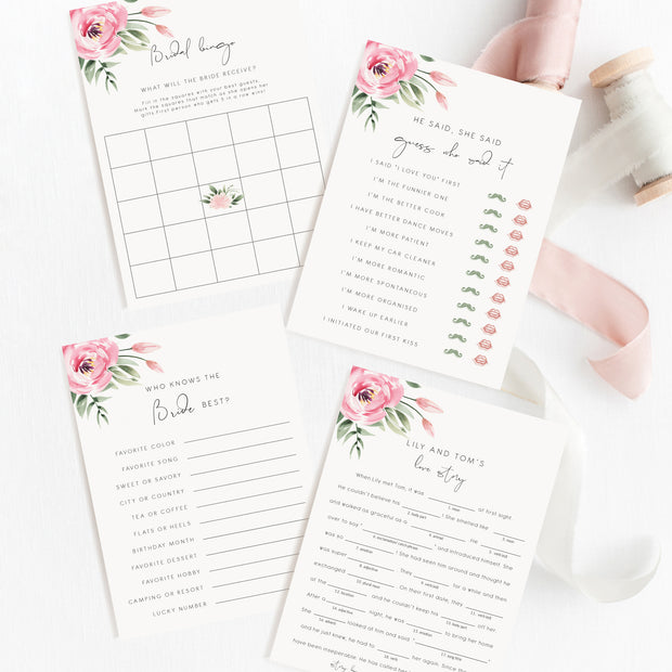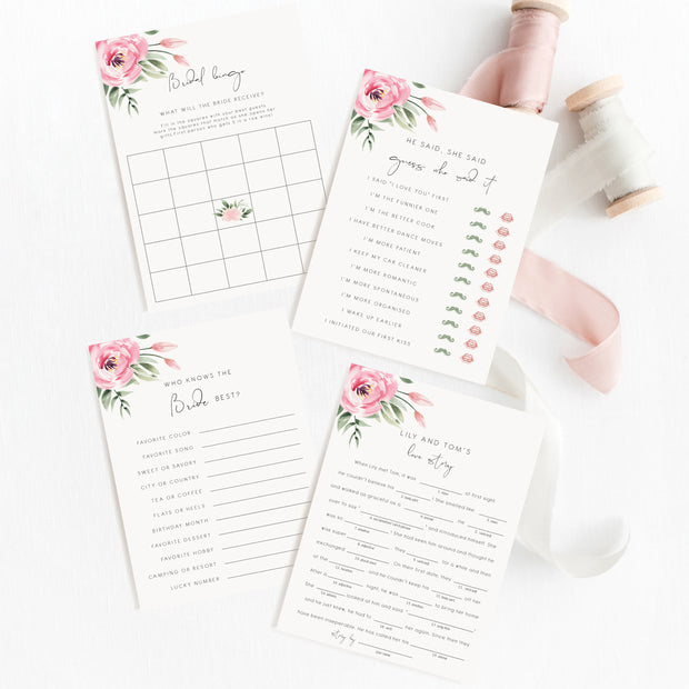 Serena Pink Peony Bridal Shower Games (Set of 4)