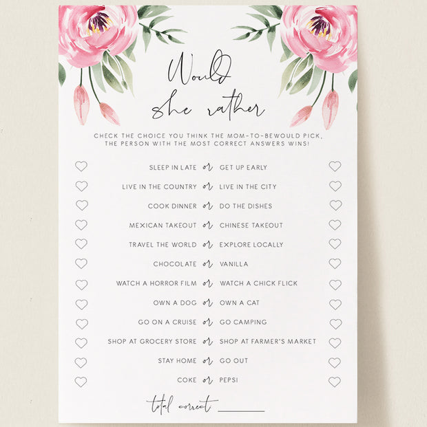 Would She Rather Pearls and Prosecco Bridal Shower Game