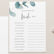 Nala Blue Eucalyptus Set of 4 Bridal Shower Games