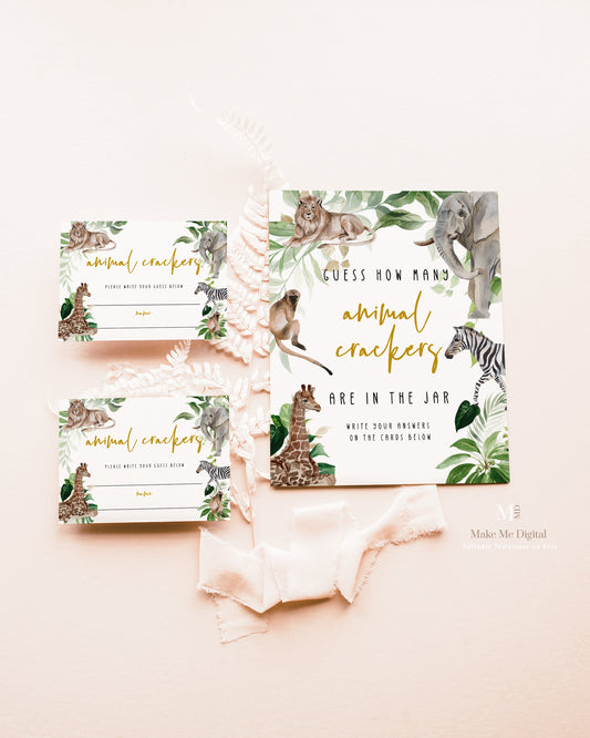 Guess how many Animal Crackers game sign Safari Animal Baby Shower template