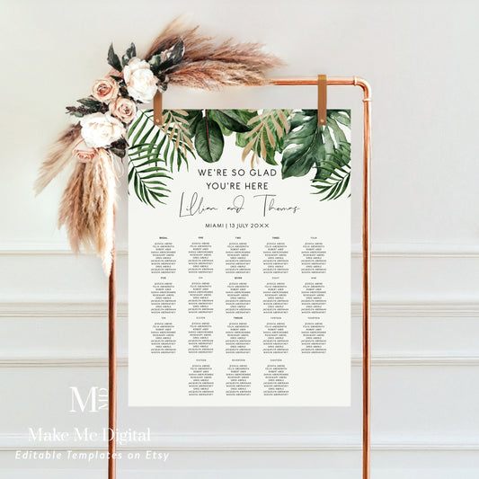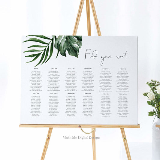 Tropical Wedding Seating Chart Wedding Table Plan, palm leaf seating plan, printable beach seating plan, instant download templett 119