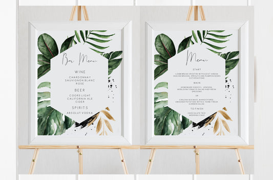 Tropical wedding menu summer greenery bridal shower menu, botanical dinner menu, instant download, 119