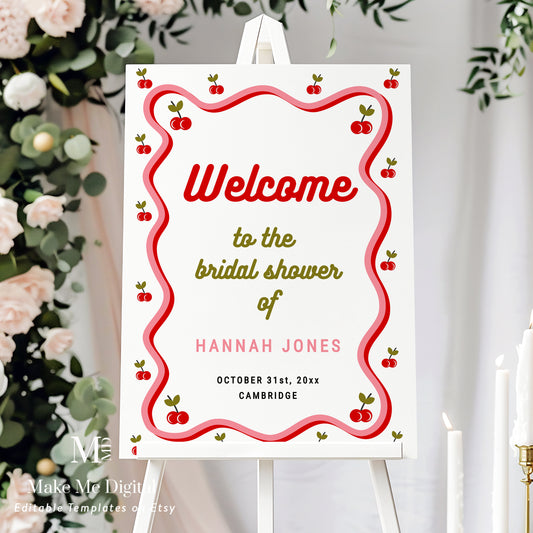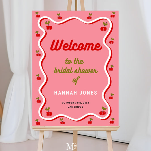 Pink Retro Cherry Bridal Shower Welcome Sign template