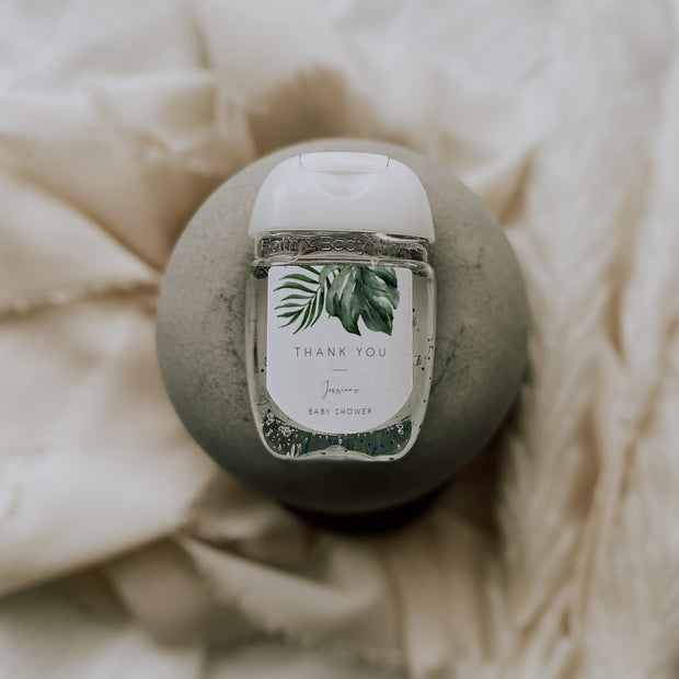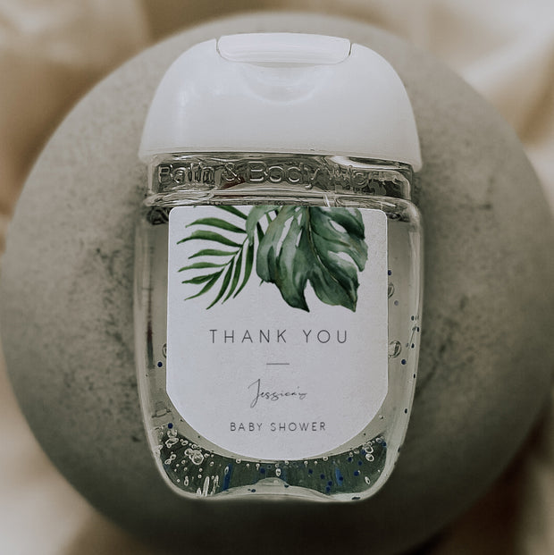 Tropical & Gold Baby Shower Hand Sanitiser Favour Label