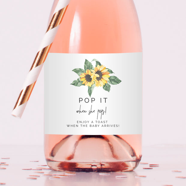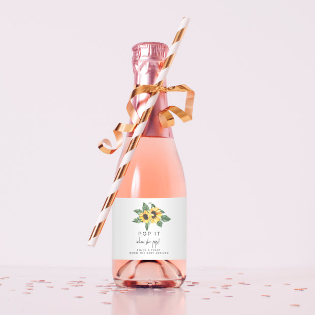 Blue and Pink Balloon Gender Reveal pop it when she pops mini champagne label