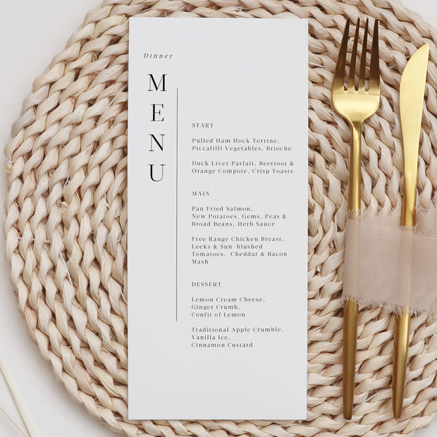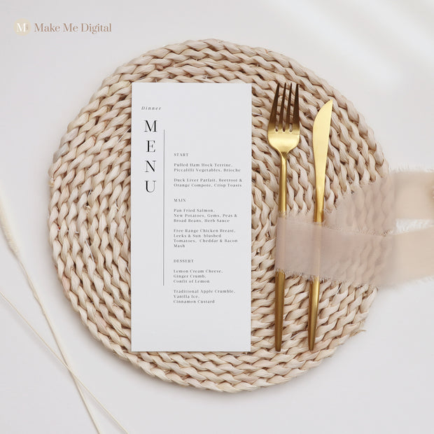 Tropical wedding menu, summer palm leaf bridal shower menu
