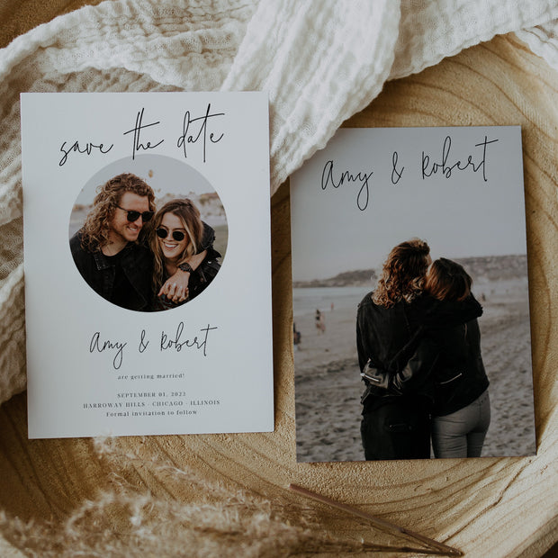 Modern Calligraphy Photo Arch Save the Date Invitation