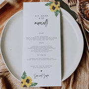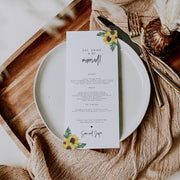 Sunflower Wedding Reception Menu
