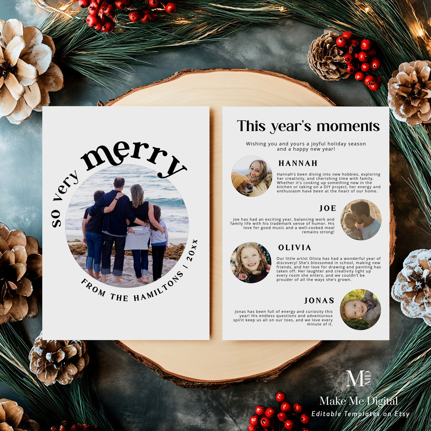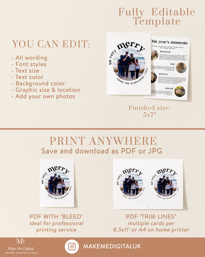 2024 Retro Year-in-Review Photo Christmas Card & Family Newsletter Template sizes included + instructions:
