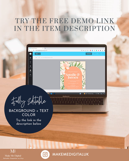 Peach Blossom Wedding Invitation Bundle, Arch cottagecore wedding invite suite ,printable autumn peach orange cottage instant download