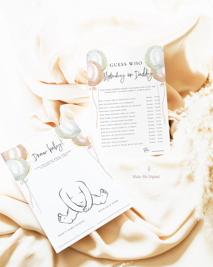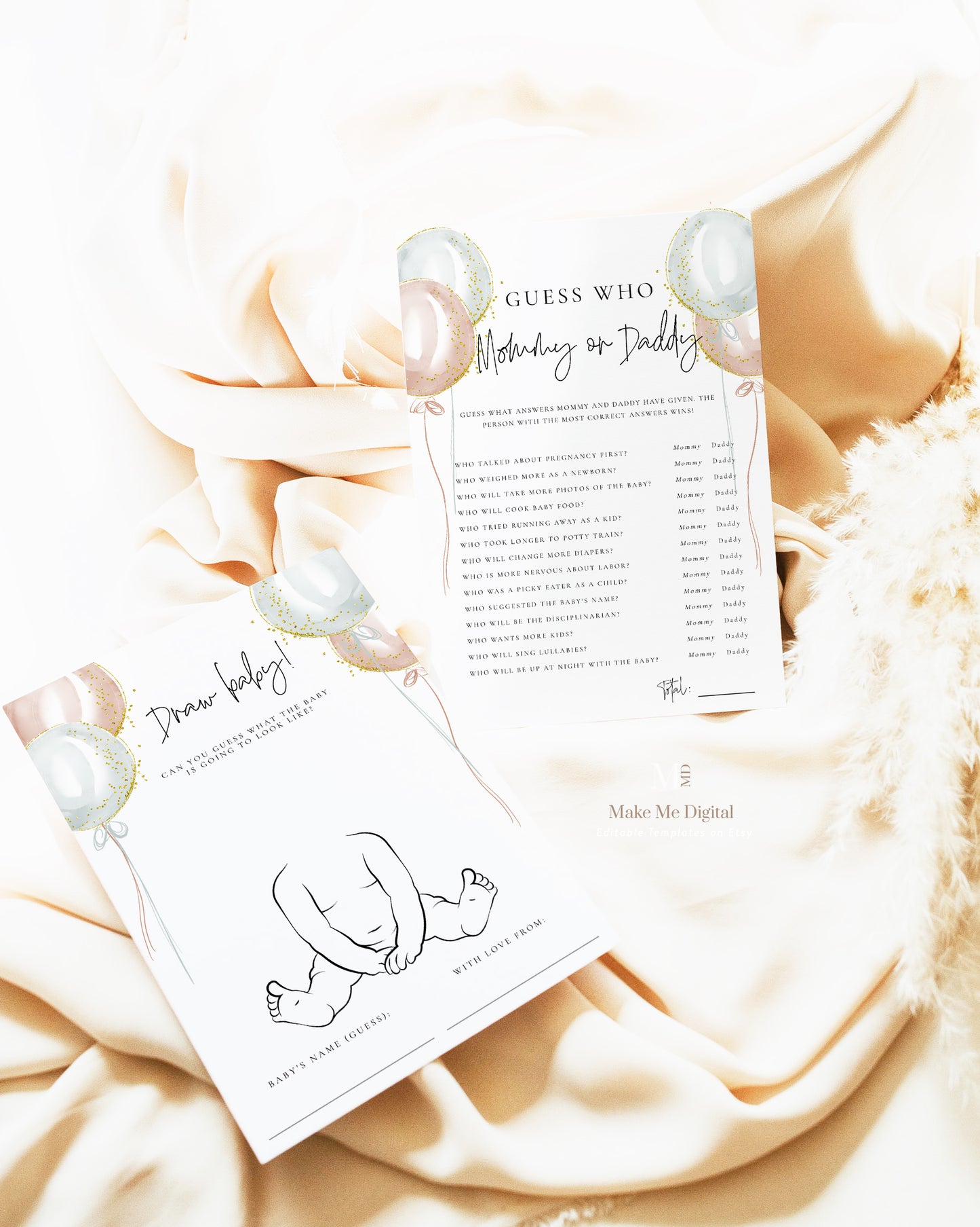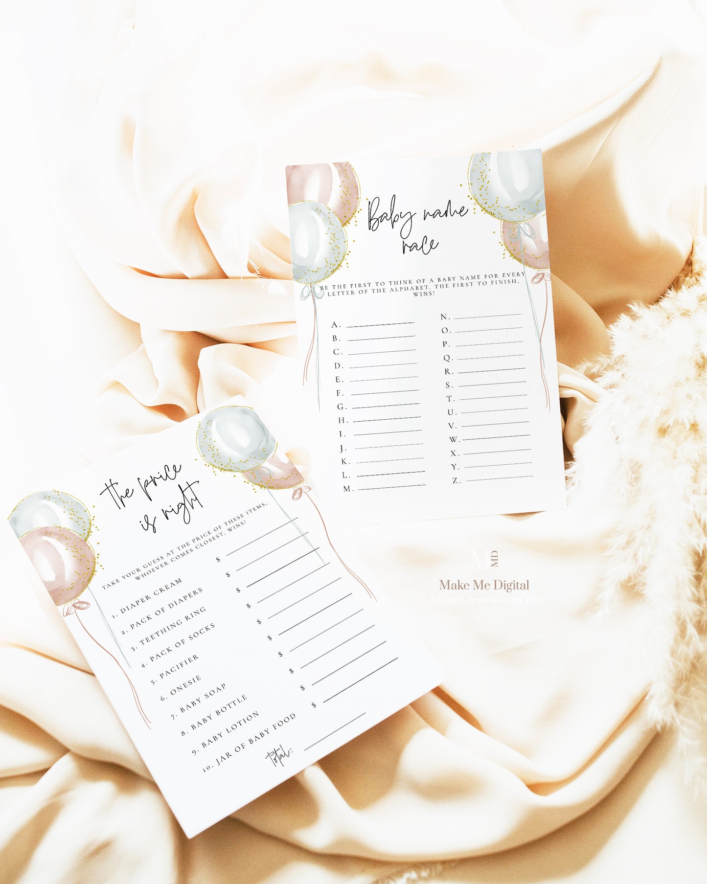 Blue and Pink Balloon Gender Reveal Baby Shower game Bundle