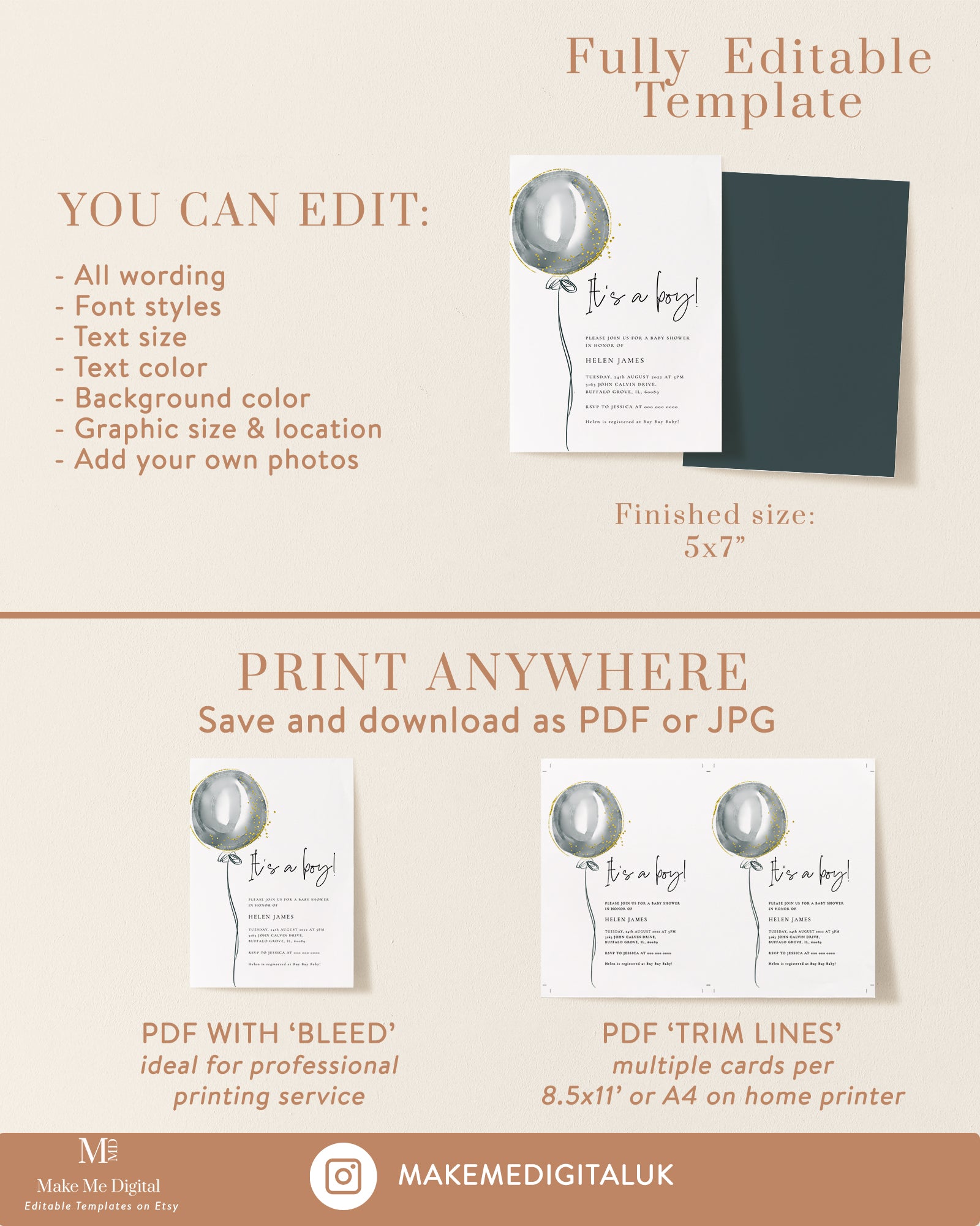 Please note that this is a digital invitation template to download only, no physical product will be shipped.