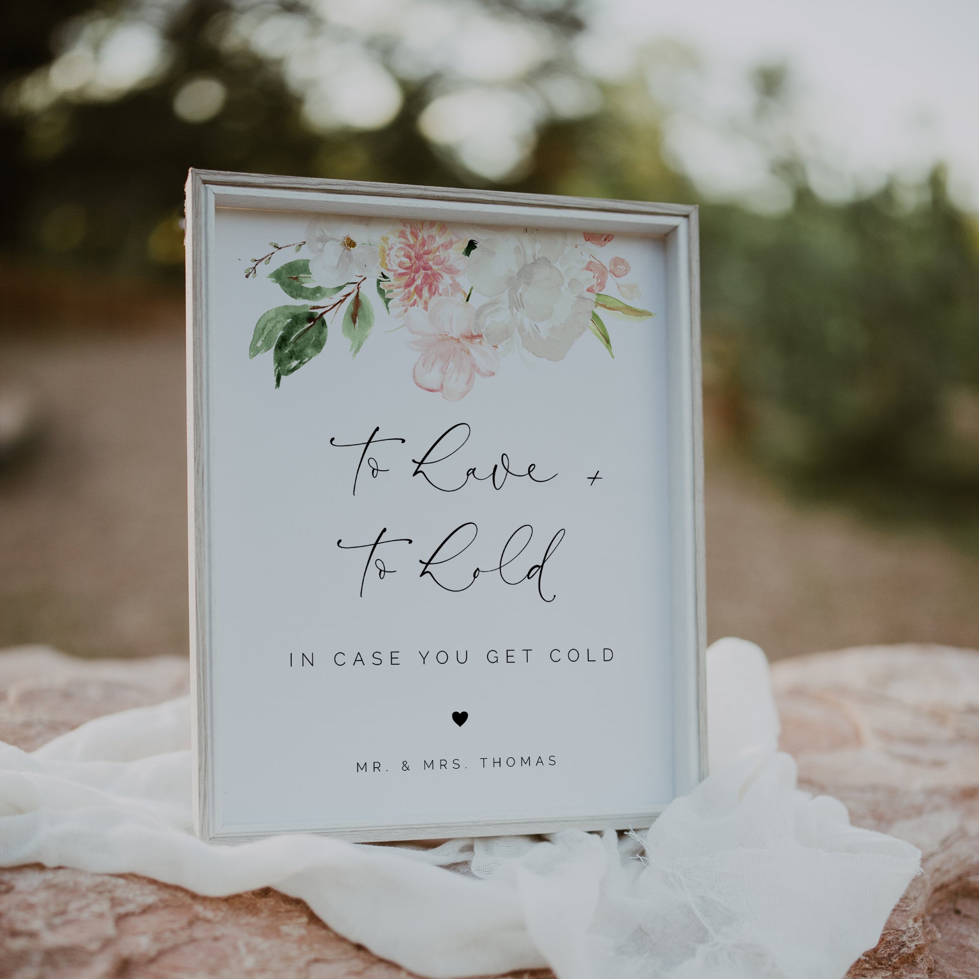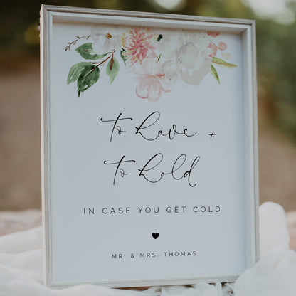 Blush Pink & White Floral Wedding Blanket Favor Sign