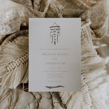 Save time, money, and wow your guests by printing your own boho windchime wedding invitation! Edit all the wording, colors, fonts, and icons to match your event needs.