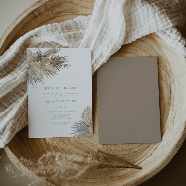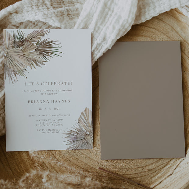 Rustic Palm Leaf Adult Birthday Invitation sizes included + instructions: