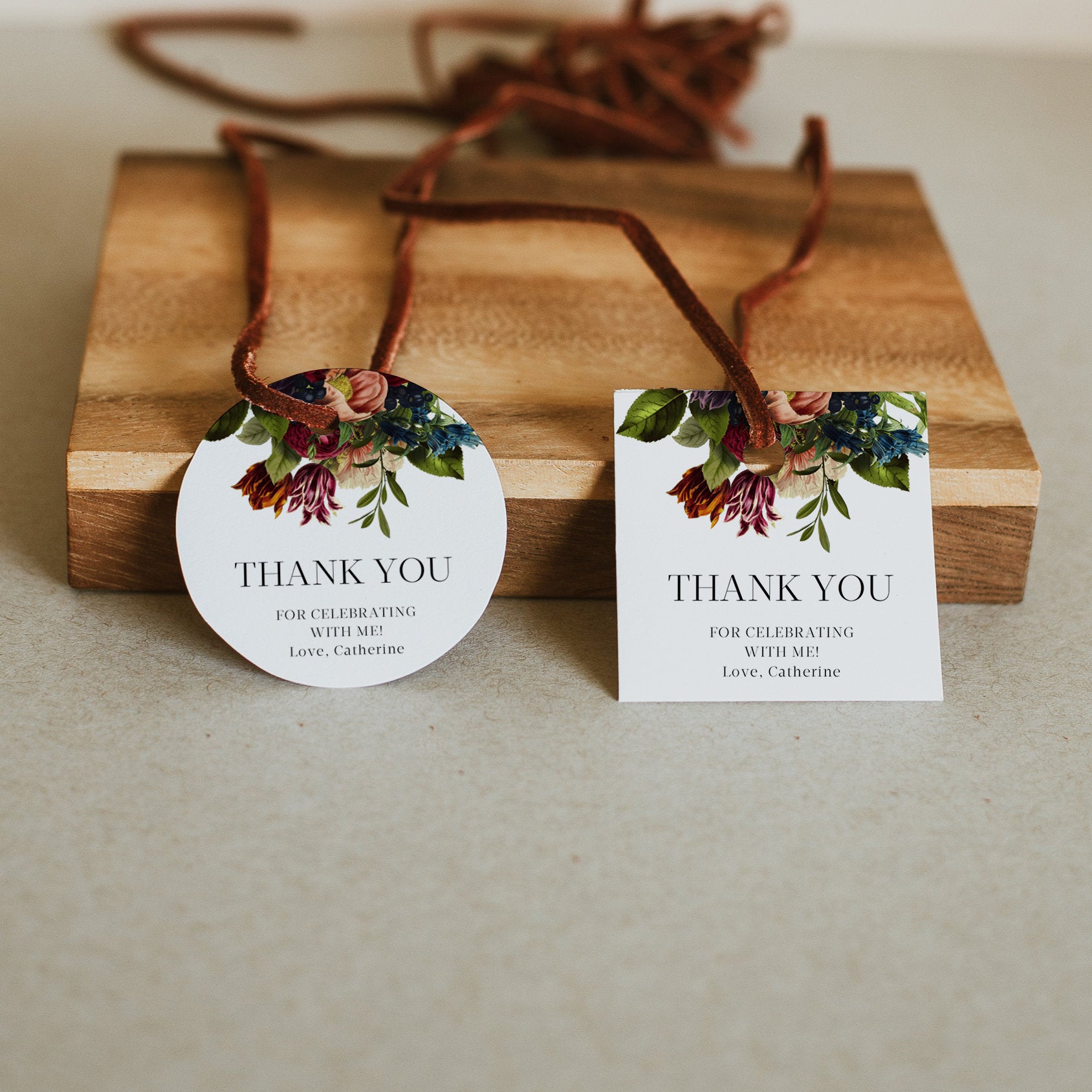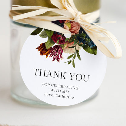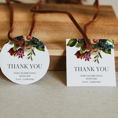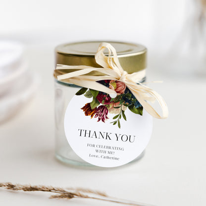 Burgundy Floral Birthday Thank You Tag