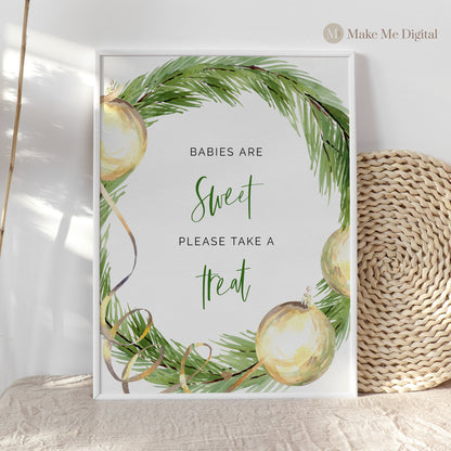 Save time, money, and wow your guests by printing your own Festive Christmas Baby Shower sign! Edit all the wording, colors, fonts, and icons to match your event needs.