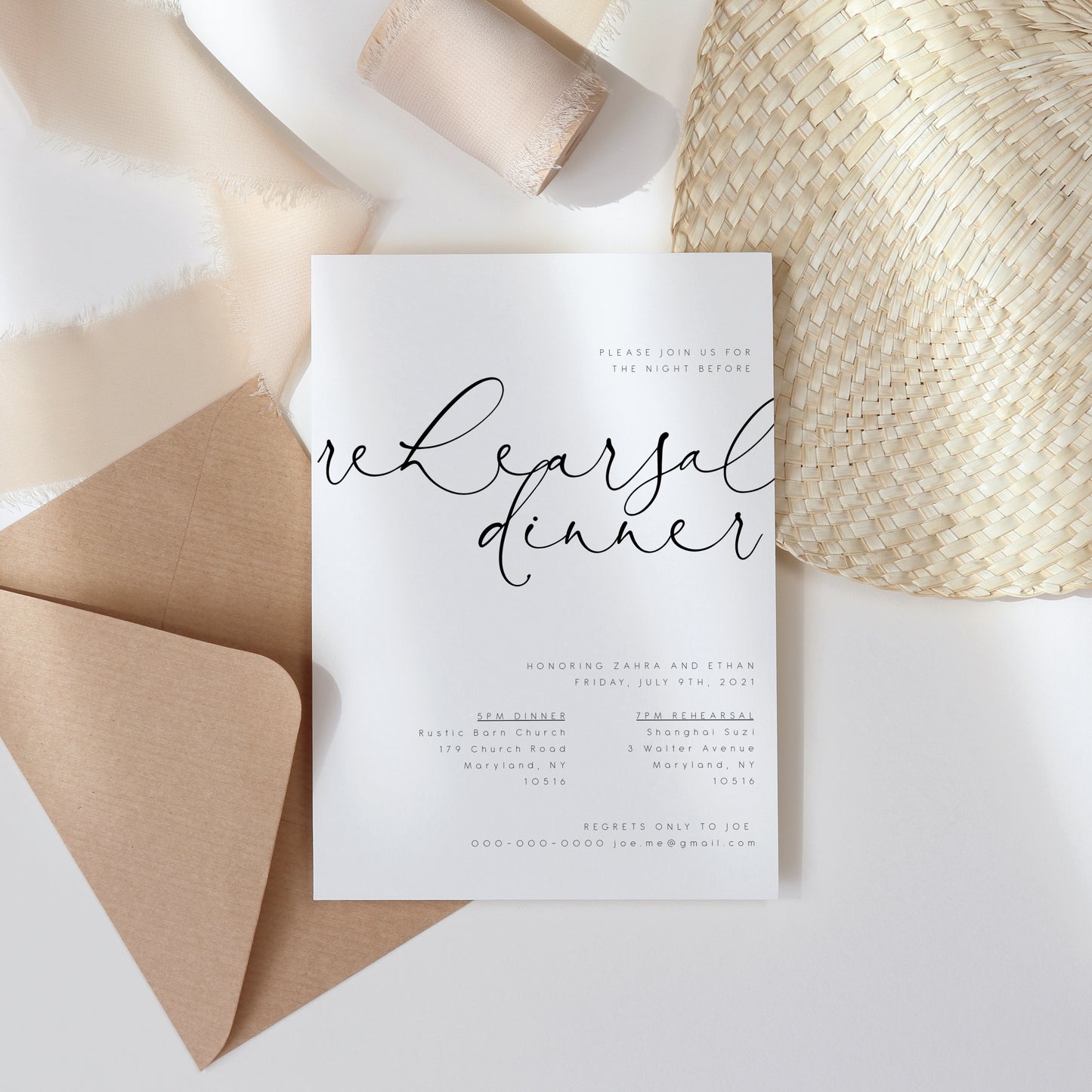 Rehearsal Dinner invitation sizes + instructions: