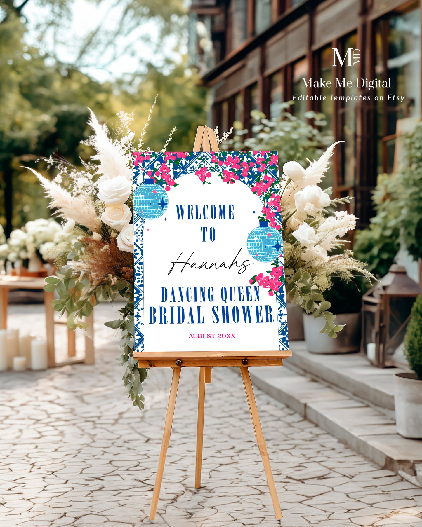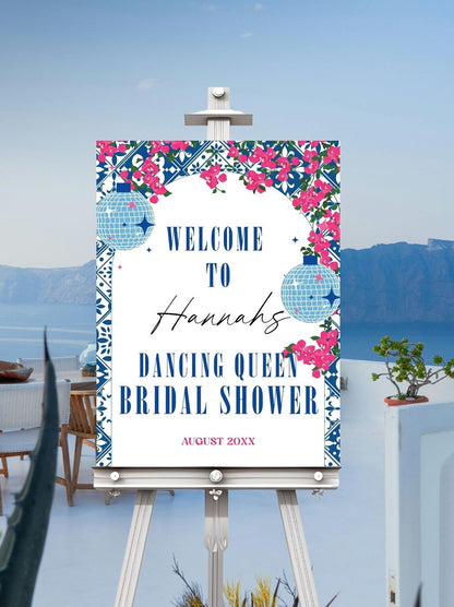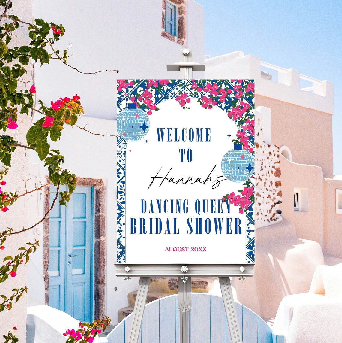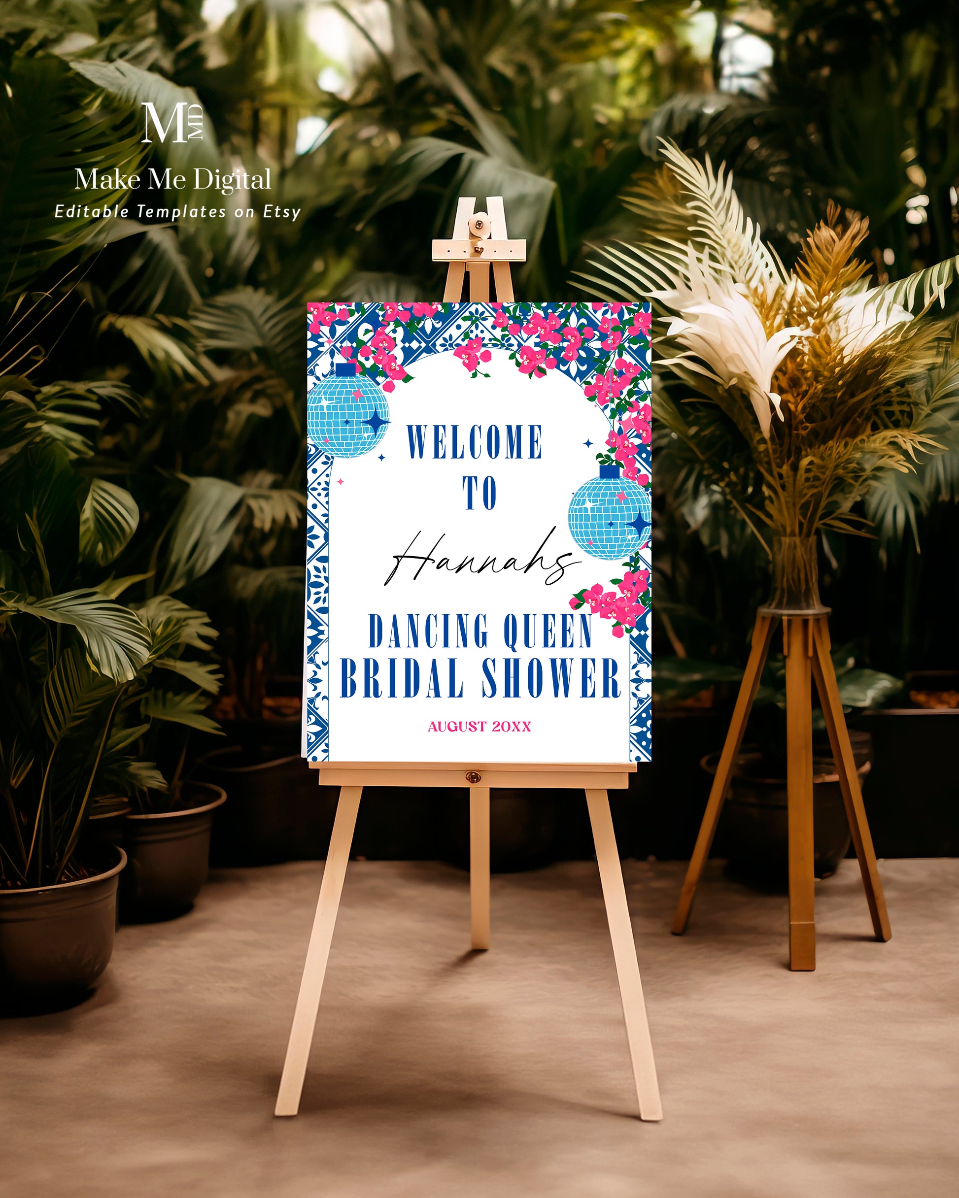 Dancing Queen Bridal Shower Welcome Sign & Mediterranean Blue Tile template