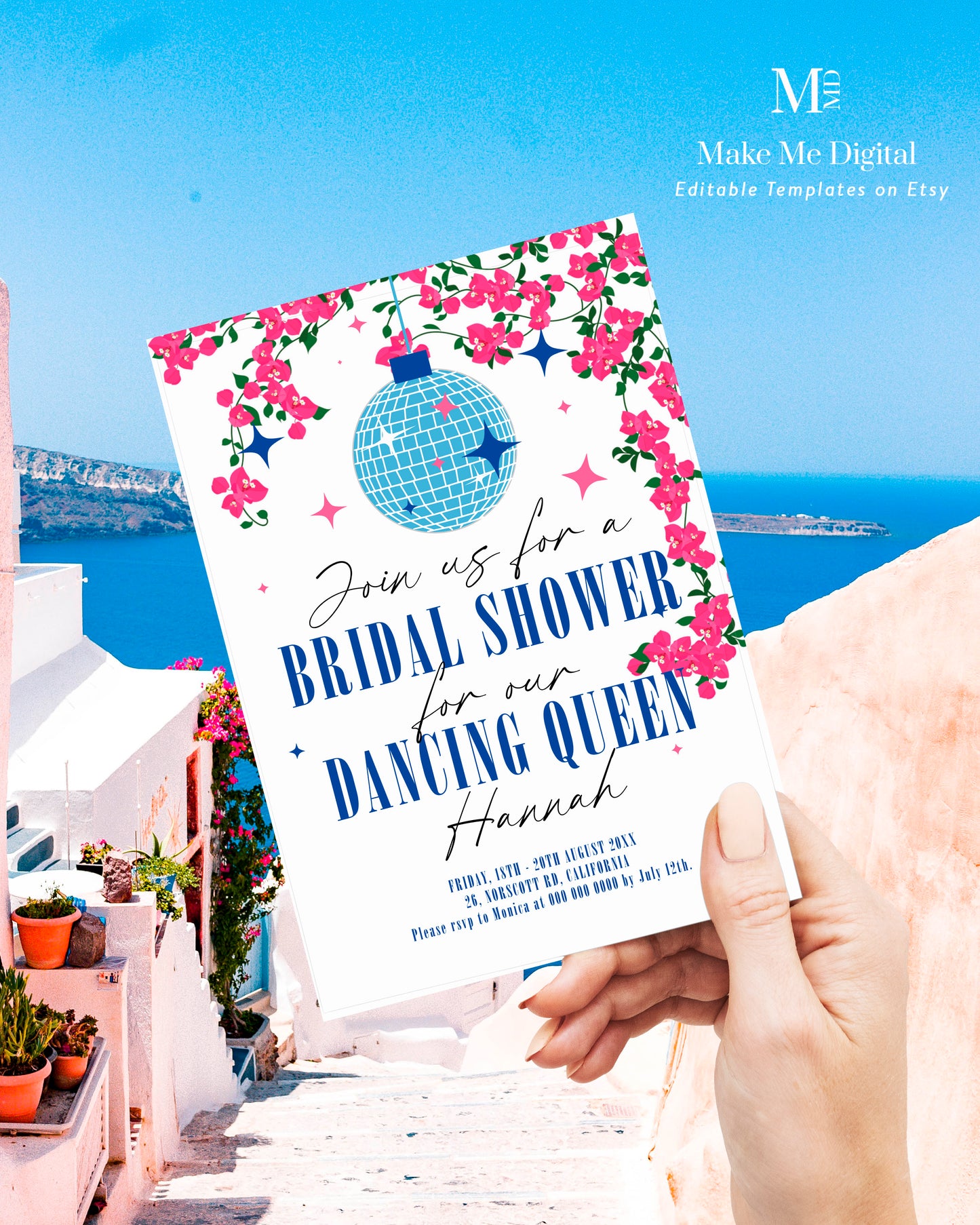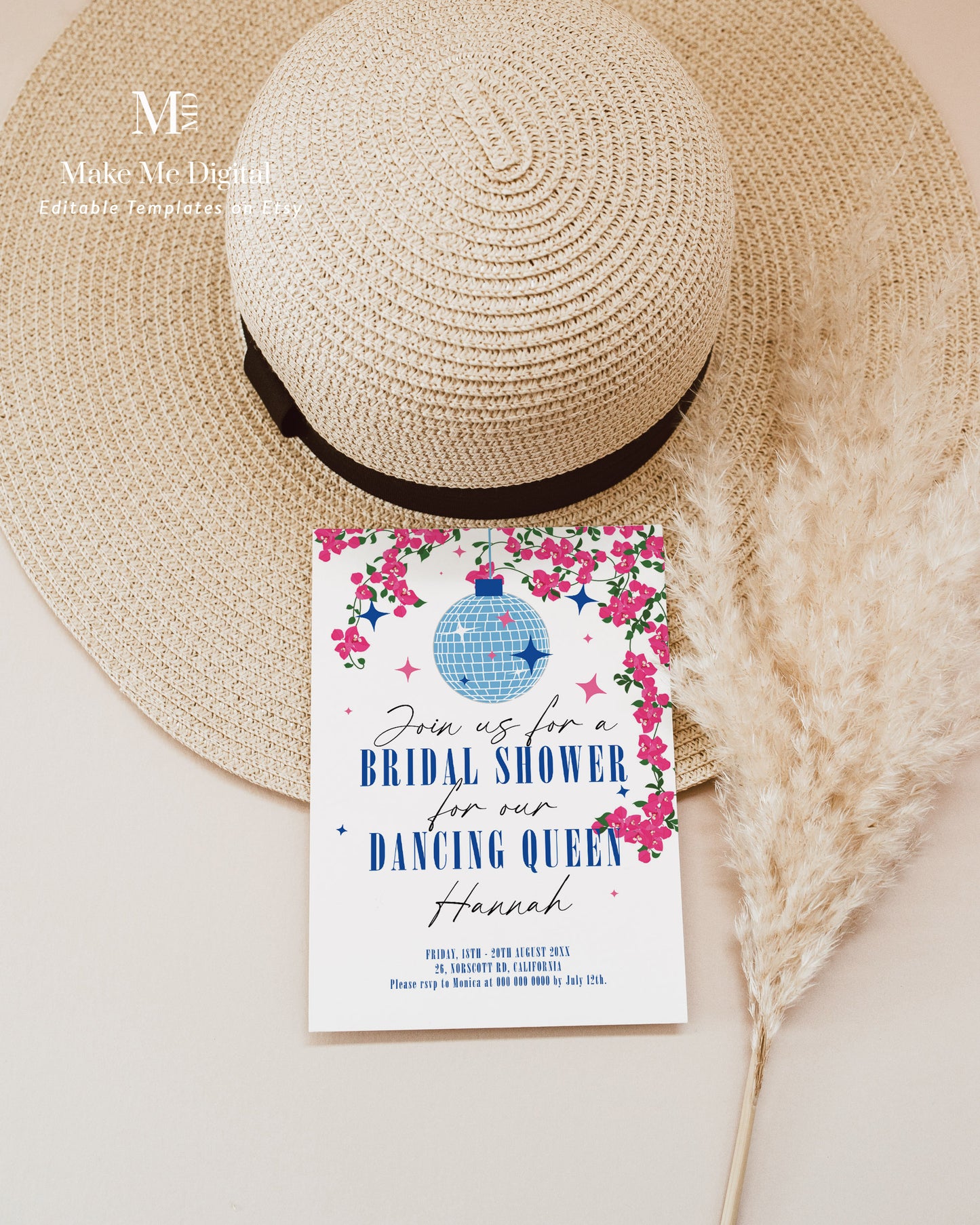 Mamma Mia Musical inspired "Dancing Queen" bridal shower invite sizes included + instructions: