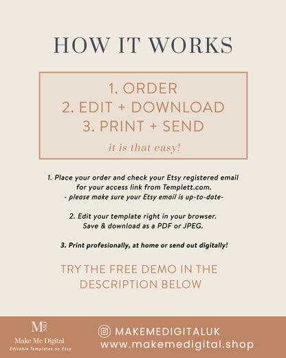 You will receive your access link directly from Templett.com within 10 minutes after your purchase. If you cannot find it, please check your junk email folder.
