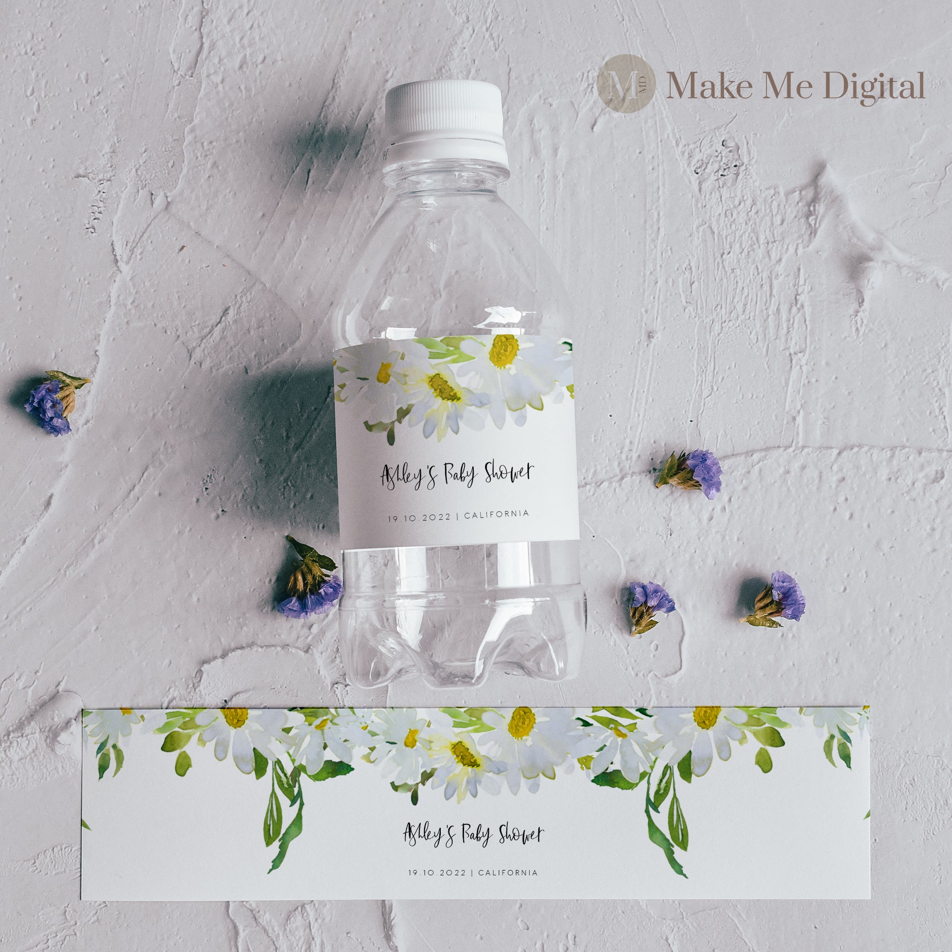 Save time, money, and wow your guests by printing your own floral daisy baby shower water bottle labels! Edit all the wording, colors, fonts, and icons to match your event needs.