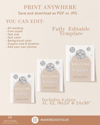 Disco Groovy Hen Party Bachelorette Welcome Sign template