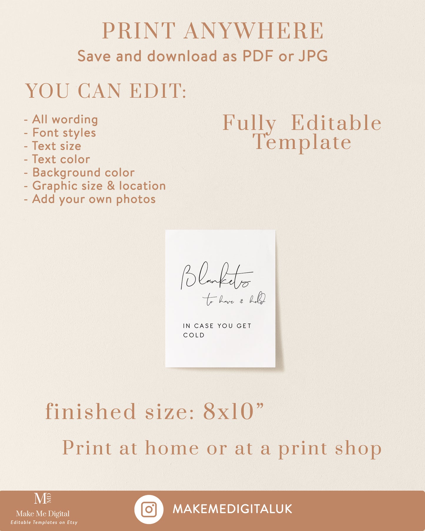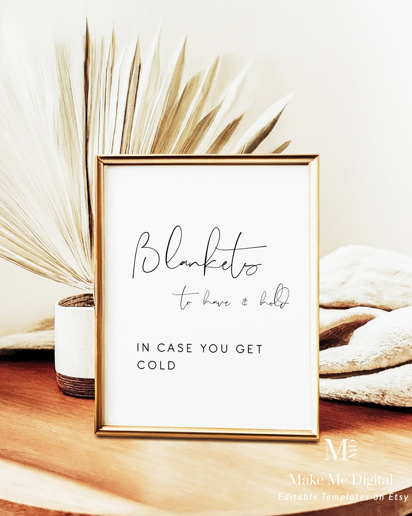 Modern to have and to hold sign, Editable wedding blanket favor sign, printable favour sign, instant download, calligraphy sign template