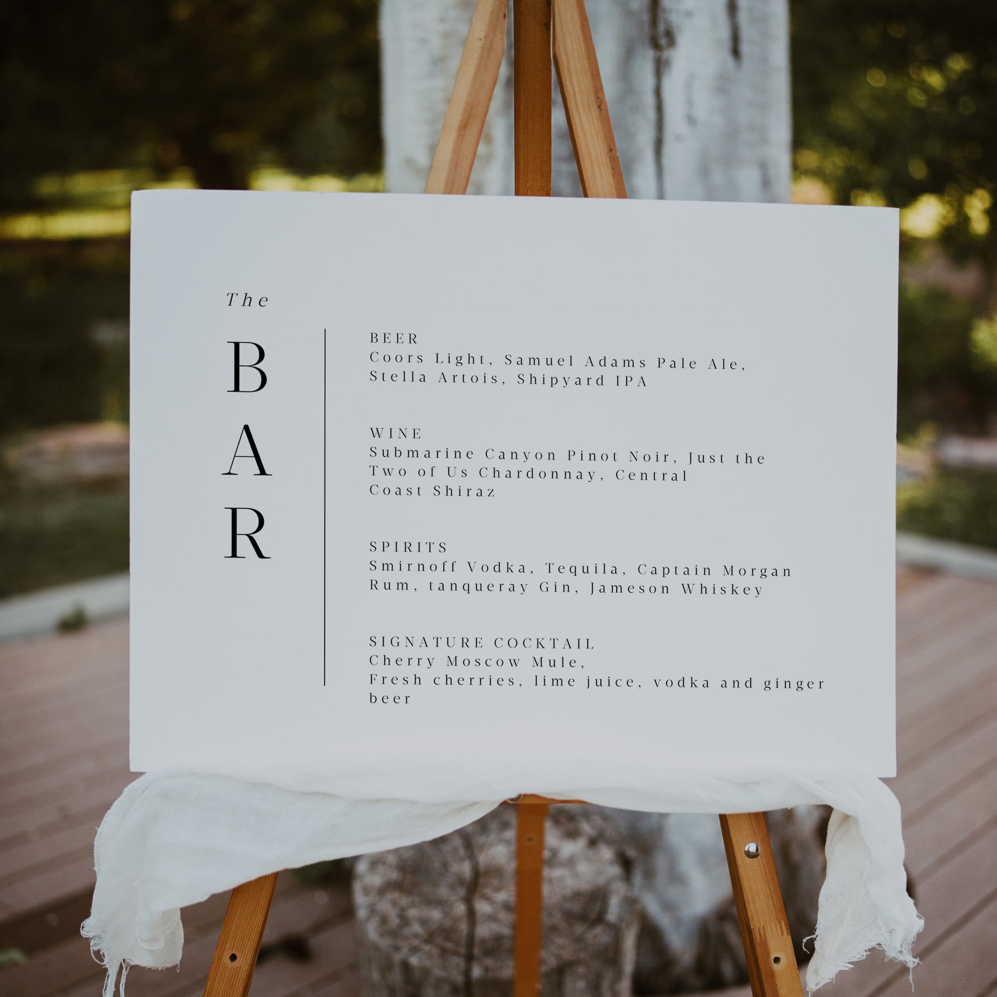 Save time, money, and wow your guests by printing your own wedding bar signs! Edit all the wording, colors, fonts, and icons to match your event needs.