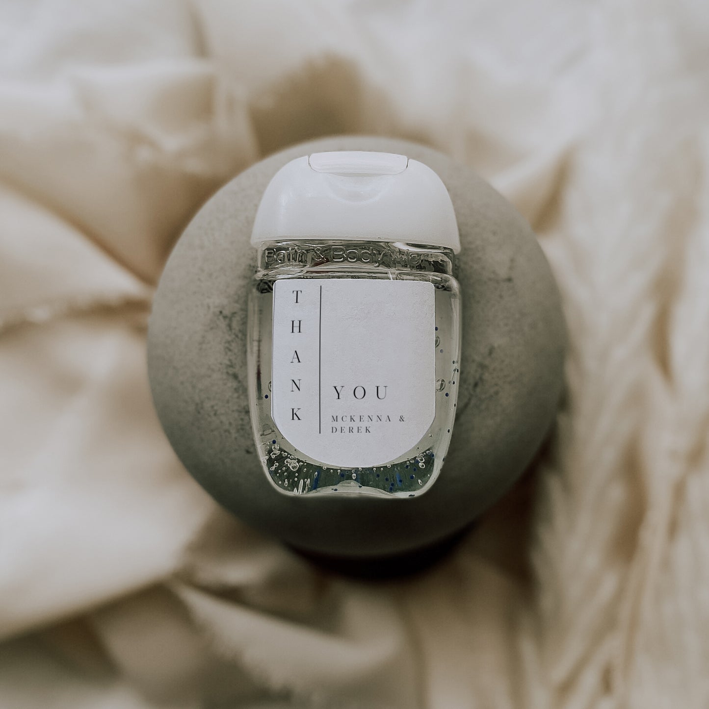 Save time, money, and wow your guests by printing your own wedding sanitizer labels! Edit all the wording, colors, fonts, and icons to match your event needs.