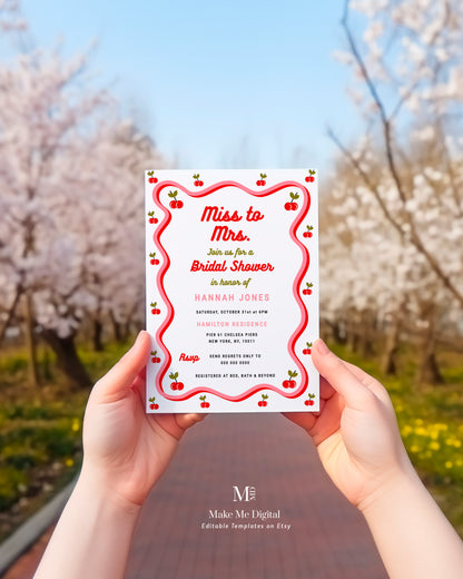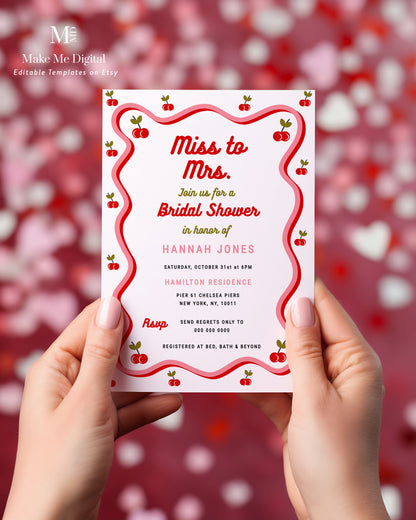 Miss to Mrs Retro Cherry Bridal Shower Invitation template
