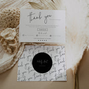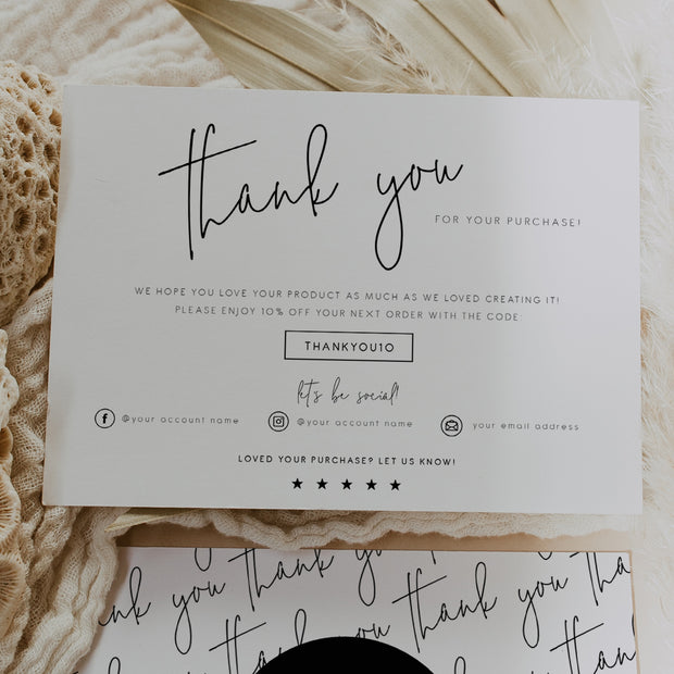 Save time, money, and wow your customers by printing your own modern calligraphy small business post-purchase thank you card insert! Edit all the wording, colors, fonts, and icons to match your business needs.