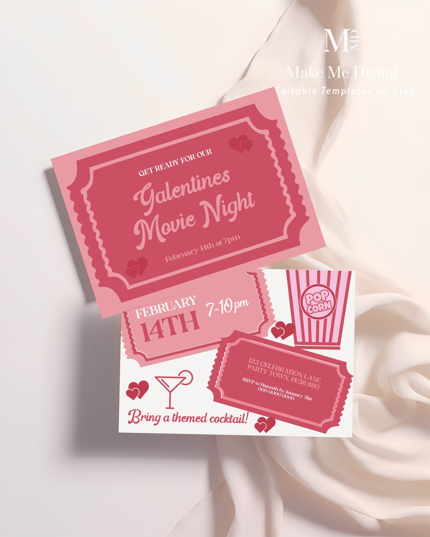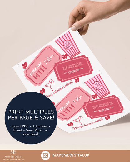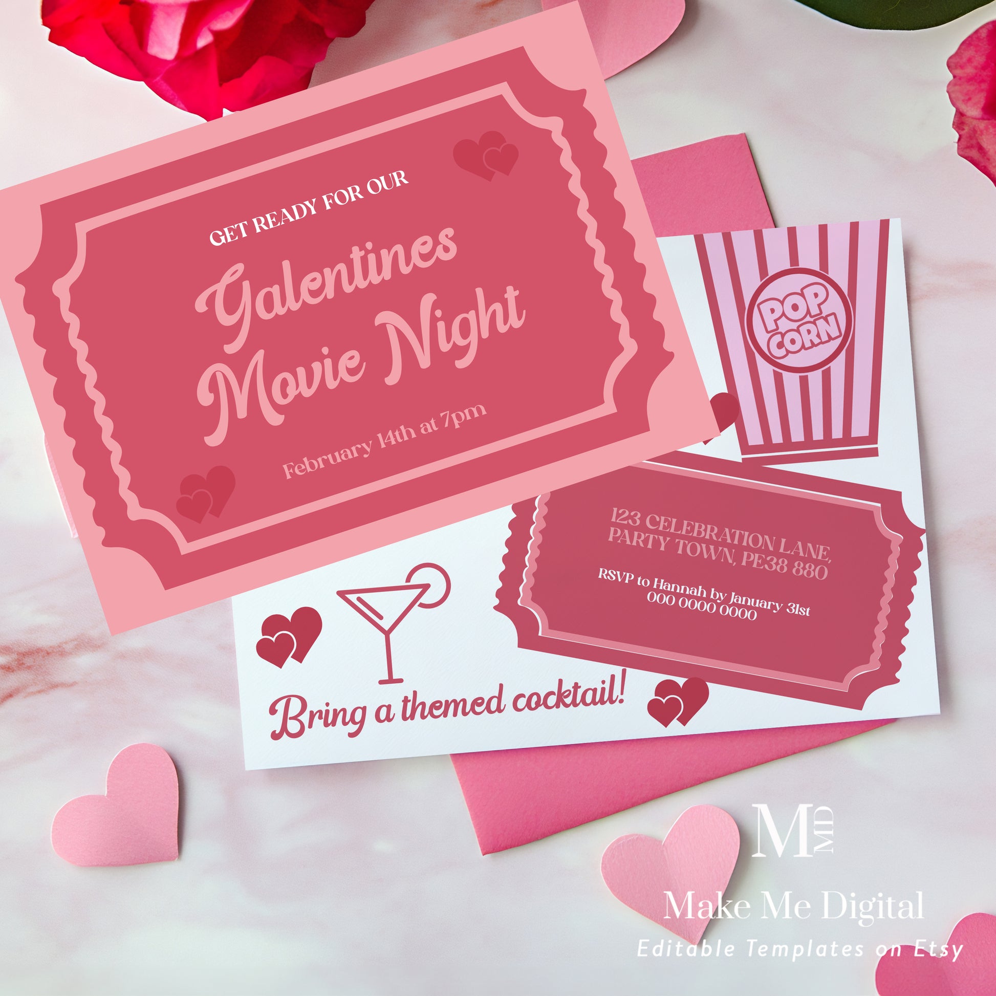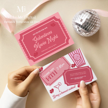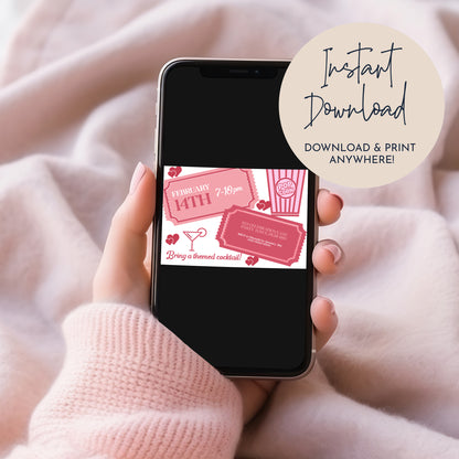Please note that this is a pink heart Valentine's Day friends movie and cocktails invite to download only, no physical product will be shipped.