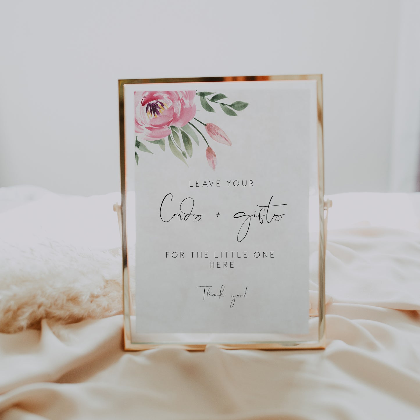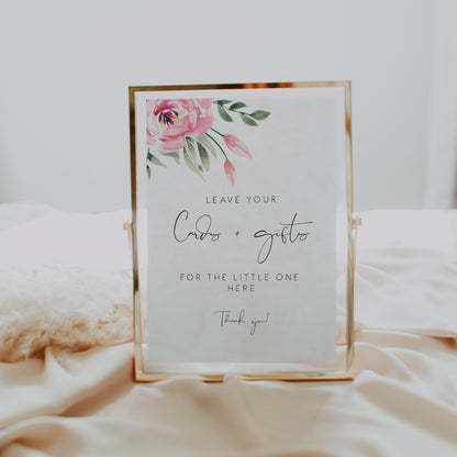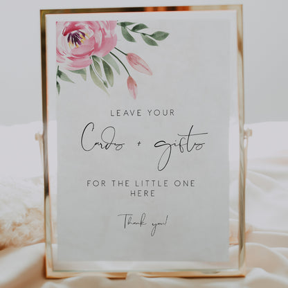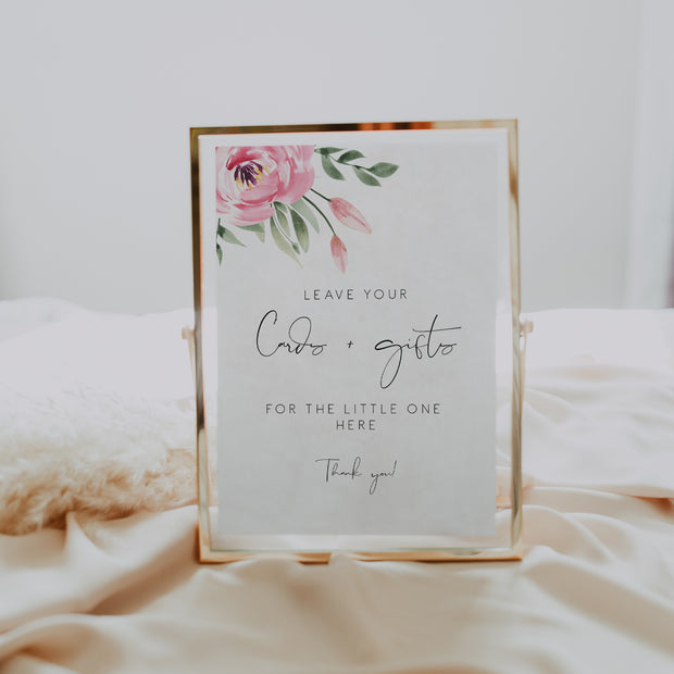 Save time, money, and wow your guests by printing your own pink peony baby shower cards and gifts sign! Edit all the wording, colors, fonts, and icons to match your event needs.
